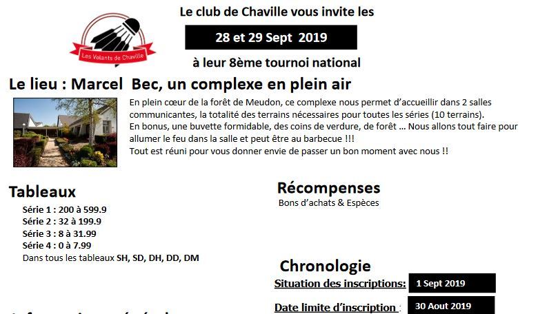 Les inscriptions se feront par mail à l'adresse: tournoi.chaville@gmail.com.
