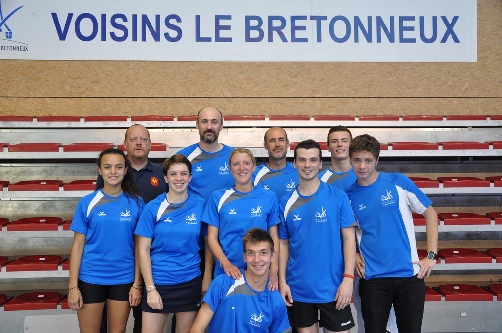 1° rencontre à 10H: VOISINS 1 bat NOZAY 2 par 5 victoires à 3; Victoires en SH de Romain MEYNIEL et Quentin BEAUVISAGE contre N3, de Virginie GOUMAIN en SD contre R4(perf!) et d'Aurélie HAURANT contre R5, du DD Aurélie HAURANT et Cécilia FORGEON contre R4/R5 (perf!). Défaites serrées du DH et des 2 DMx.