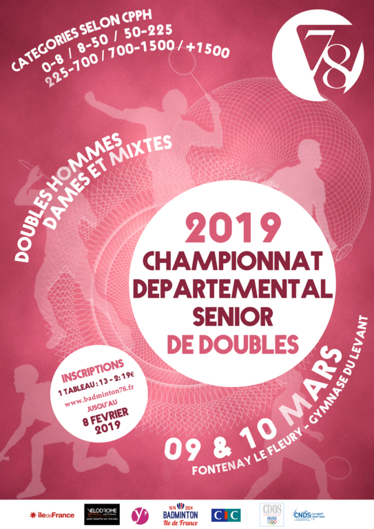 Le Championnat Départemental de Doubles Sénior des Yvelines 2018/2019 est un tournoi Départemental qui s’adresse à tous les joueurs des catégories Cadets, Juniors, Seniors et Vétérans