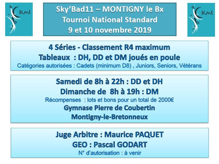 Le club de Montigny le Bretonneux est heureux de vous accueillir les 9 et 10 novembre 2019 pour la 11ème édition de son tournoi national.