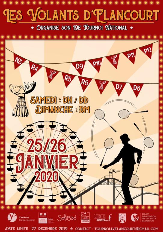 Le club des Volants d'Elancourt est heureux de vous annoncer que son 19ème tournoi de doubles aura lieu les 25 et 26 janvier 2020.