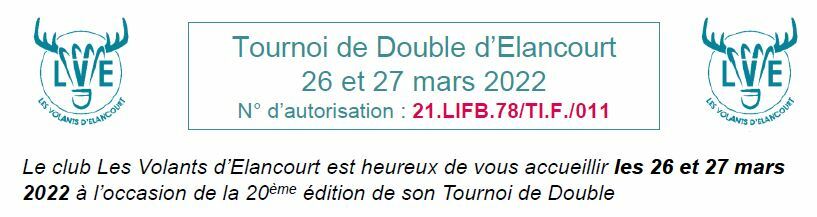 Après avoir dû annuler notre dernière édition, nous revenons avec la 20ème édition de notre Tournoi de Doubles d'Elancourt.