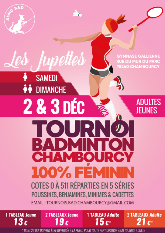 Tournoi EXCLUSIVEMENT féminin et qui accueille à la fois des jeunes & des adultes.